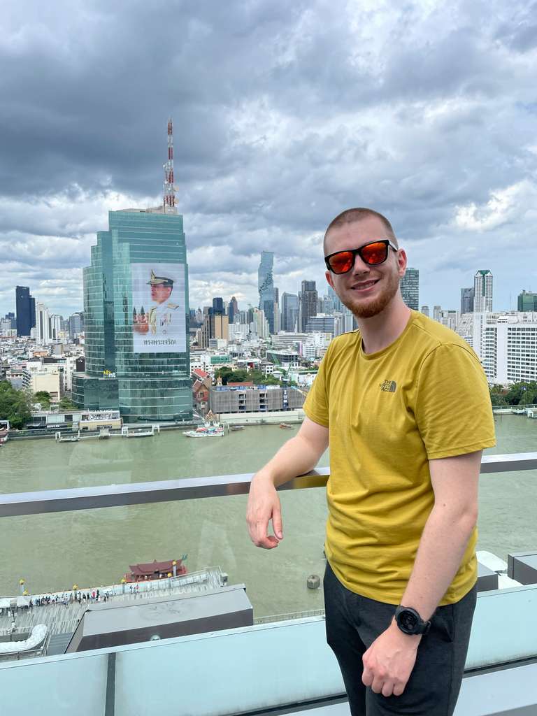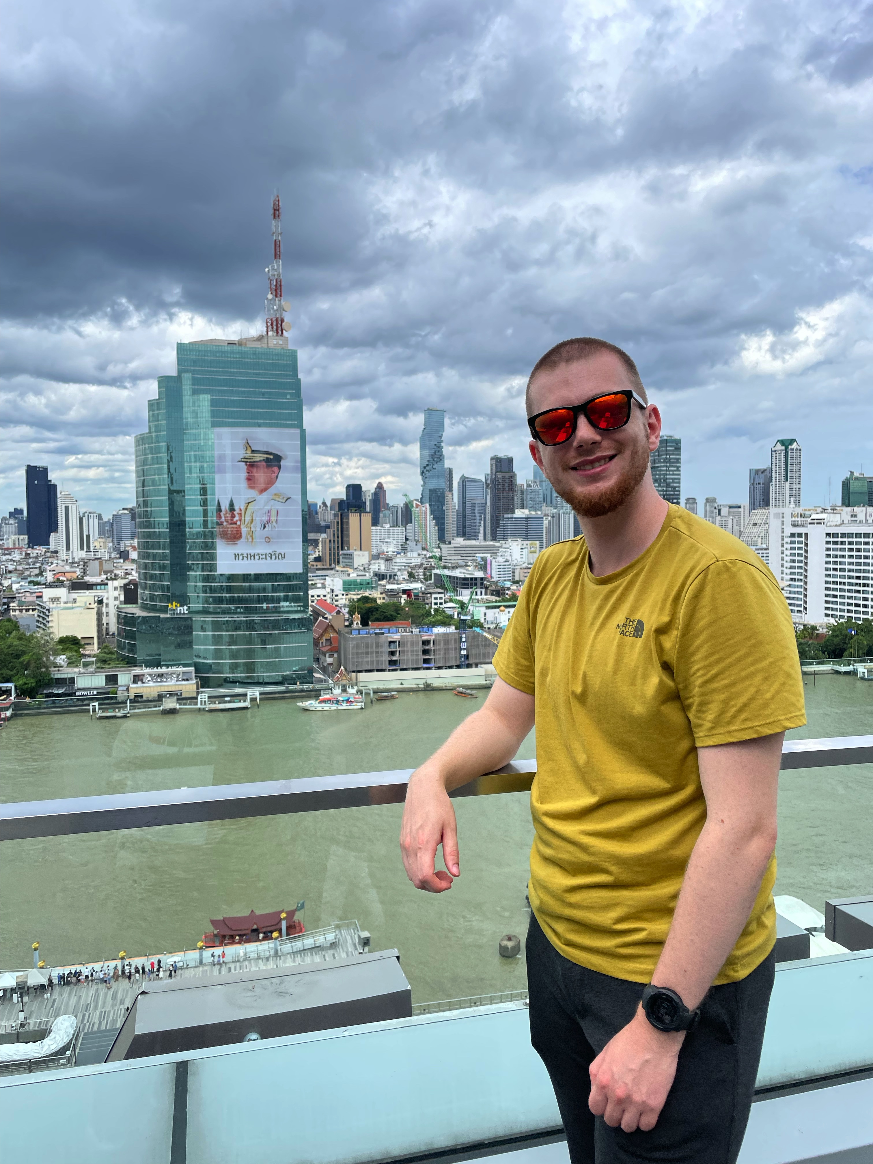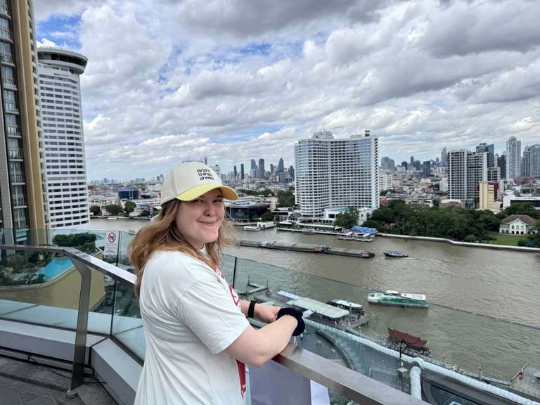 Sedan lämnade vi Sooksiam för att gå in i Iconsiam, som var helt galet stor med 10 sjukt stora våningar. Om man jämför det med Siam Paragon, som var kronjuvelen av köpcentrum när Ludvig var här 2017, så är det här dubbelt så stort. Vi shoppade lite (varsin t-shirt!). De hade även en terrass på sjunde våningen där man hade utsikt över floden och ett enormt porträtt av nuvarande kungen.