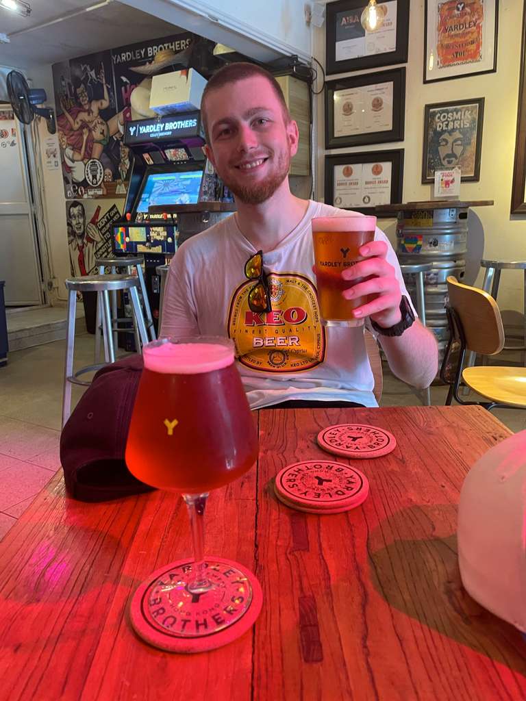 Vandringen var mestadels vacker, men på ena sidan av ön ligger det ett stort kraftverk med stora skorstenar och gasturbiner, så det tog bort lite från utsikten tyvärr. När vi närmade oss slutet hittade vi en oas i form av hipsterbaren The Beer Shack, vilket var en trevlig paus där vi provade några roliga ölsorter - Emelie tog en suröl med smak av gurka och lime och Ludvig tog en IPA. Efter att ha vilat där ett tag tog vi båten tillbaka till Central.