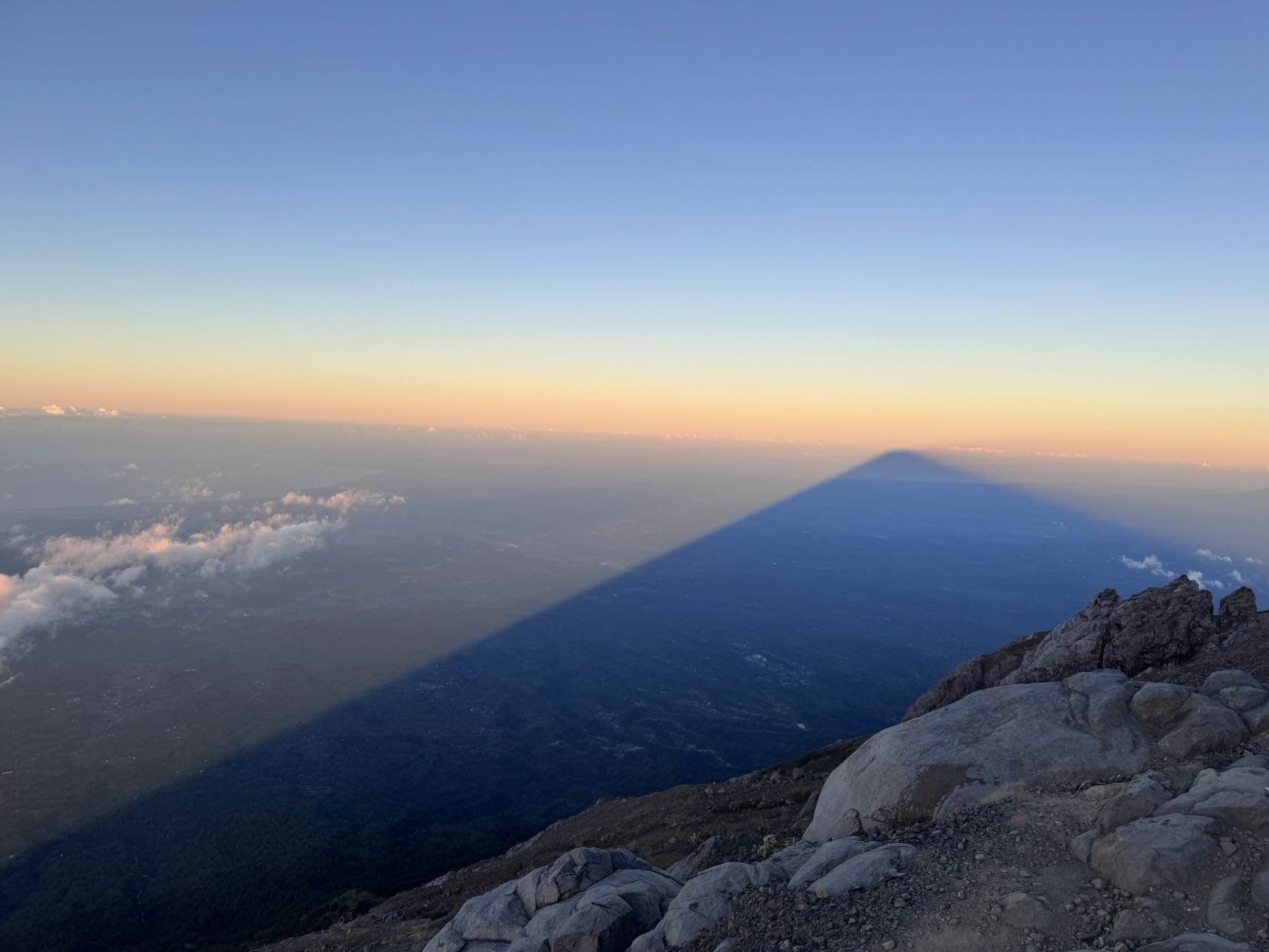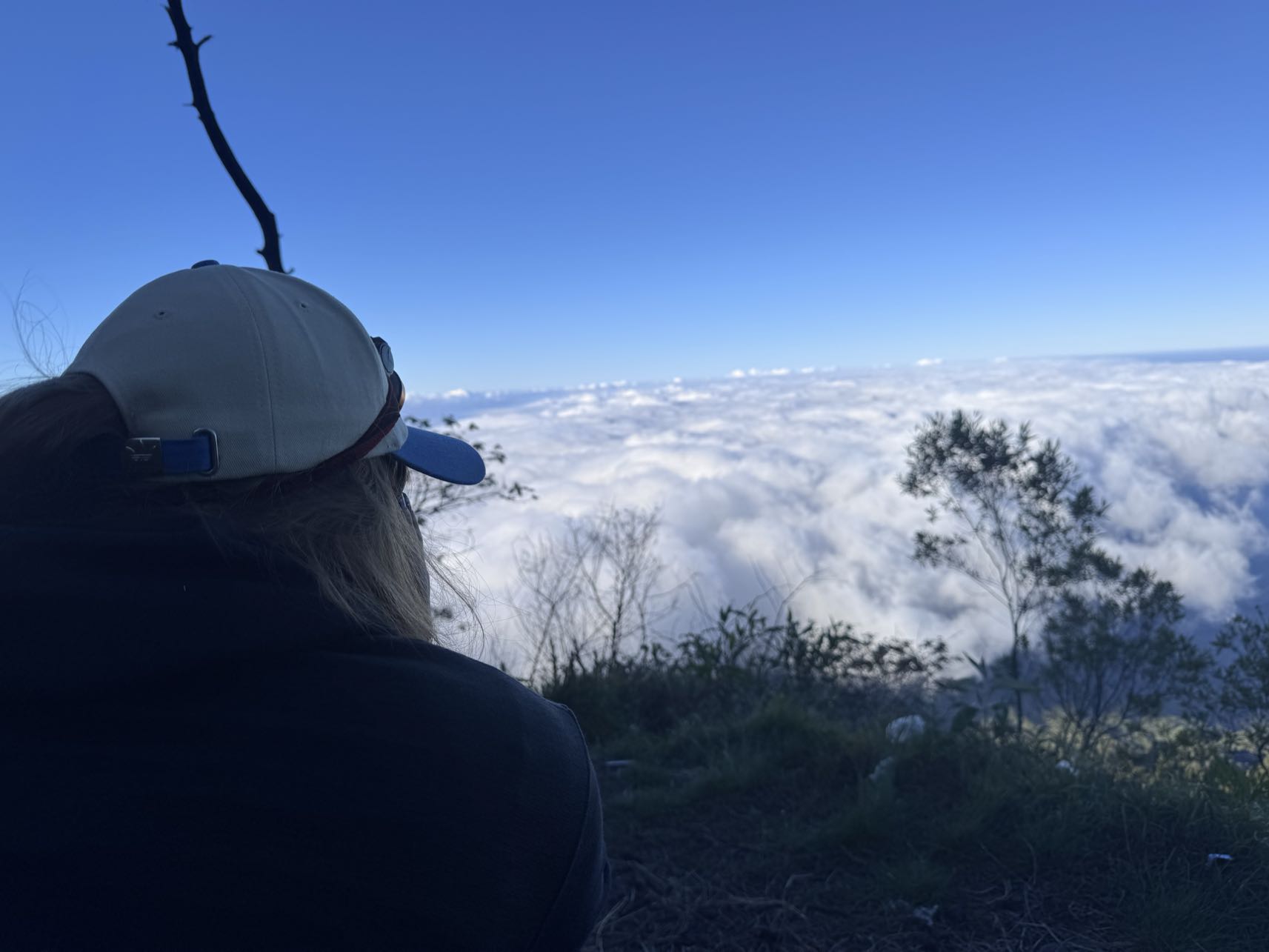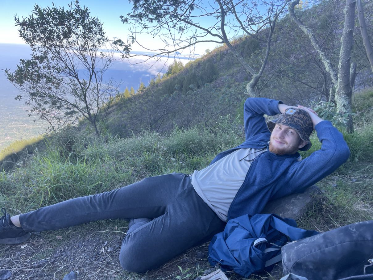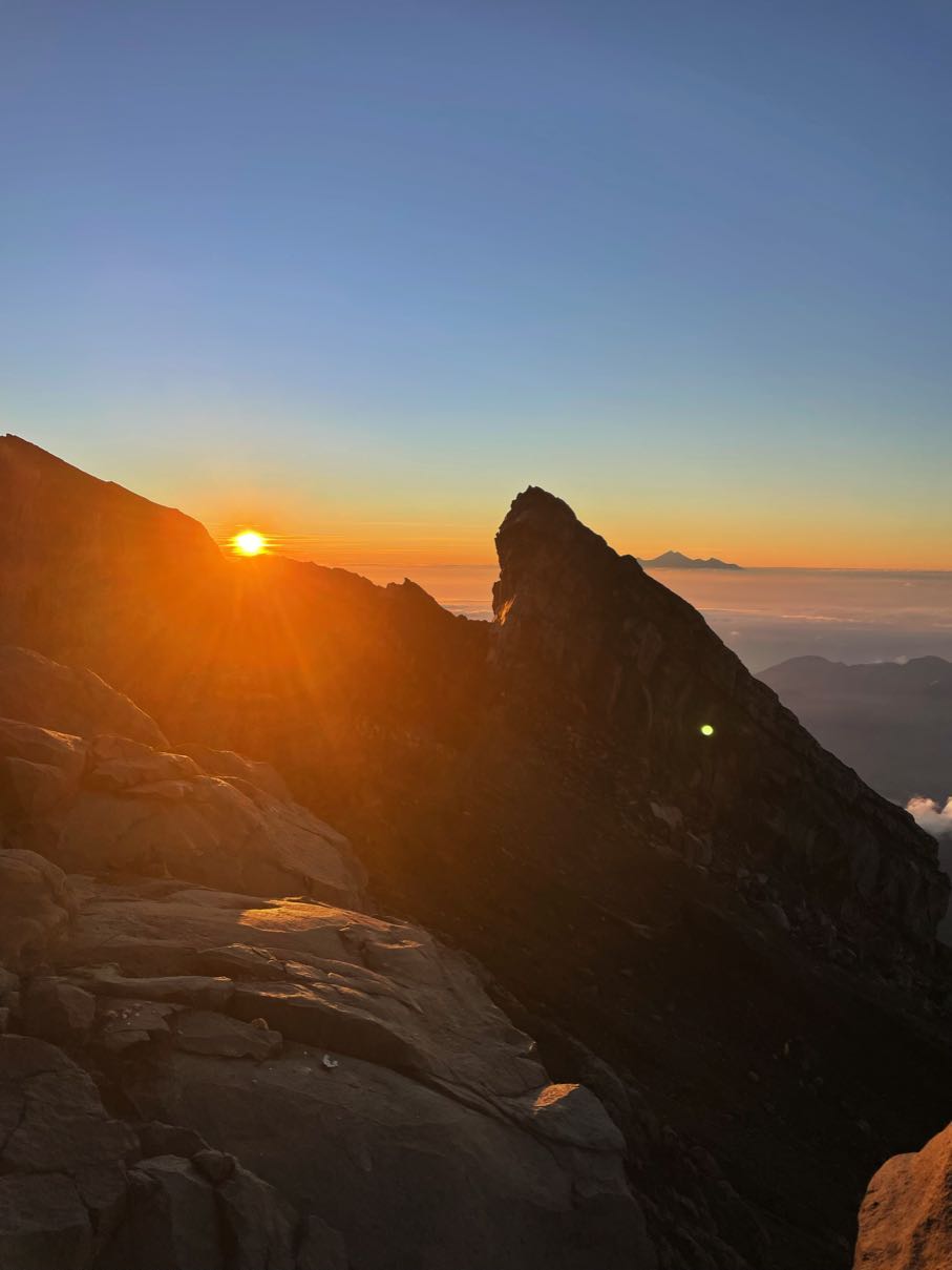 Men plötsligt var vi bara dÀr pÄ toppen. En skylt gick runt dÀr det stod "Mt Agung 3.142 Mdpl - Never End", som beviset pÄ att vi hade nÄtt mÄlet. Vi fick banan, cup noodles och te, och utsikten bredde ut sig i rött och gult mot horisonten medans solen började gÄ upp. Det kÀndes overkligt, nÀstan som en feberdröm i tröttheten. Bilderna gör inte platsen rÀttvisa, det var sÄ mycket mÀktigare i verkligheten (som vanligt). Vi hade pratat om huruvida det skulle kÀnnas vÀrt det, och Àven om svaret fortfarande Àr osÀkert, sÄ Àr det ÀndÄ otroligt hÀftigt att ha klarat det. Nu Àr det gjort, det gÄr inte att ta ifrÄn oss!!