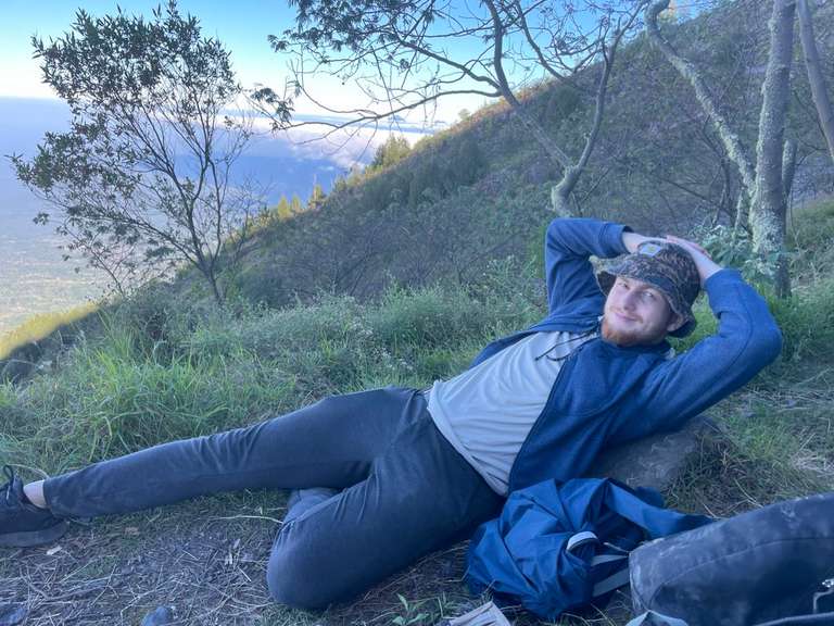 Efter trapporna och templet sĂ„ började vandringen pĂ„ en ganska sĂ„ tydlig stig som kĂ€ndes nĂ€stan som en "motorvĂ€g", men det blev snabbt brant och otroligt jobbigt. Vi tog första riktiga pausen efter ungefĂ€r en timme, men pauserna var otydliga, man visste aldrig hur lĂ€nge de skulle vara. Guiden verkade följa en tydlig plan, men delade den inte med oss, vilket gjorde det svĂ„rt att veta nĂ€r man kunde slappna av. TerrĂ€ngen gick konstant uppĂ„t och mellan pauserna avverkade vi 200â300 höjdmeter i varierande svĂ„righetsgrad. Det gick dock konstant uppĂ„t, inget sicksackande, inga platta partier, utan bara hela tiden rakt uppĂ„t. Det var vĂ€ldigt utmattande!