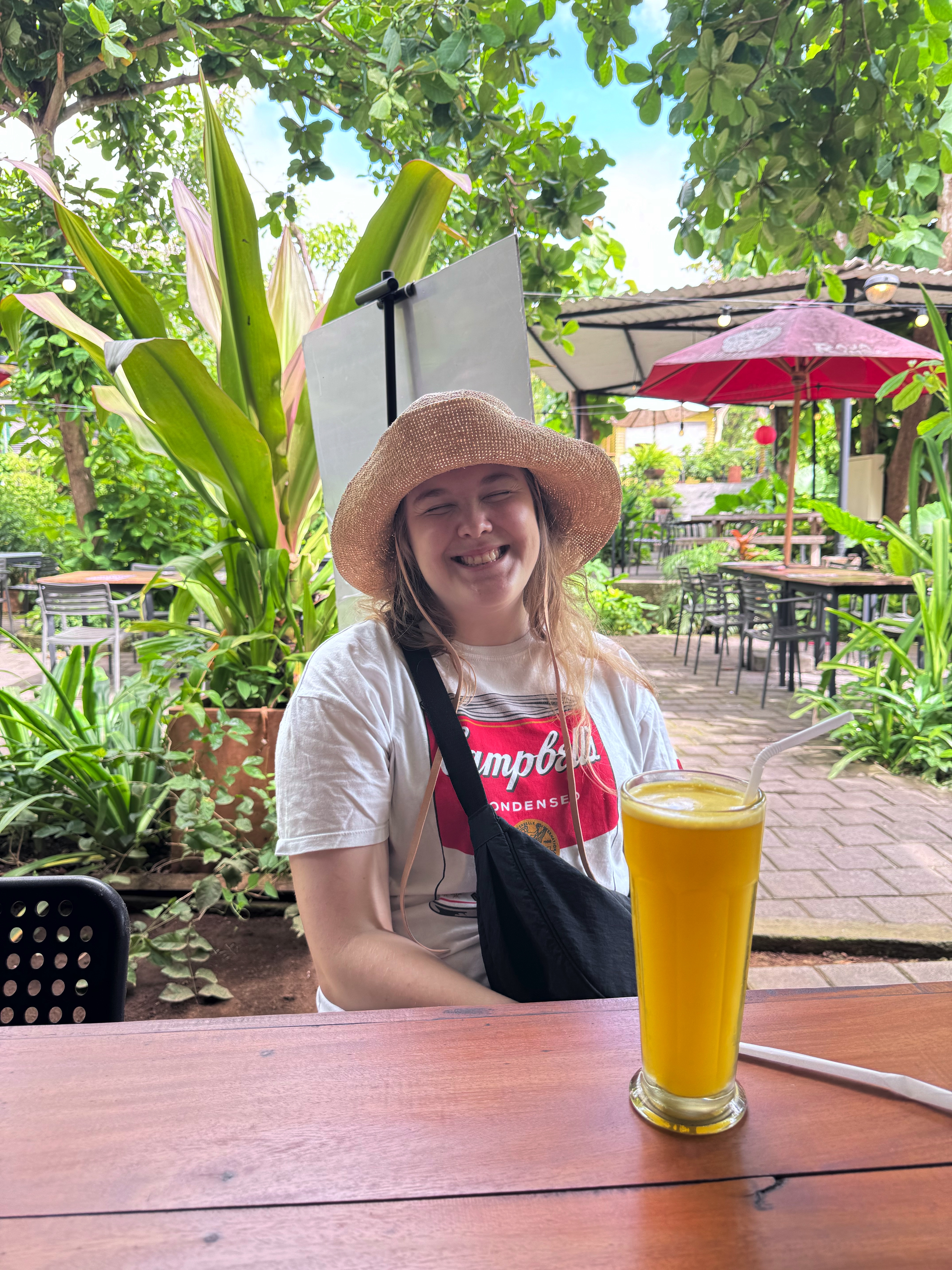 Vi tog en taxi till hotellet och kom fram vid 10-tiden. När vi kom in på rummet upptäckte vi att det var fullt av små myror. Det rörde sig saker överallt, och han från receptionen kom och bug-spray:ade en massa, och vi "städade" lite själva, i slutändan var vi så trötta att vi bestämde oss för att sova ändå. Vi har sett några insekter idag, men absolut inte lika många som igår. Det var några i sängen, och Emelie kände att det här kommer bli jobbigt. Men vi har överlevt hittills!