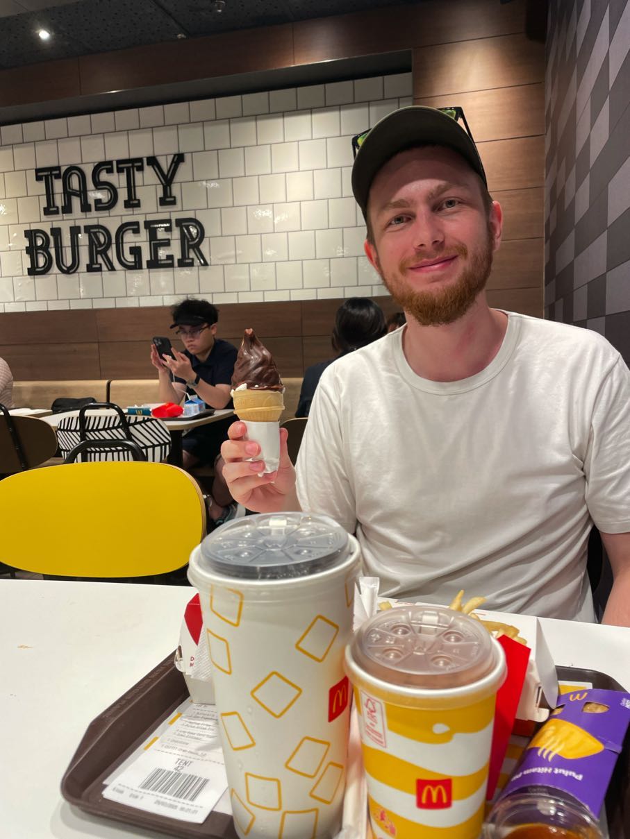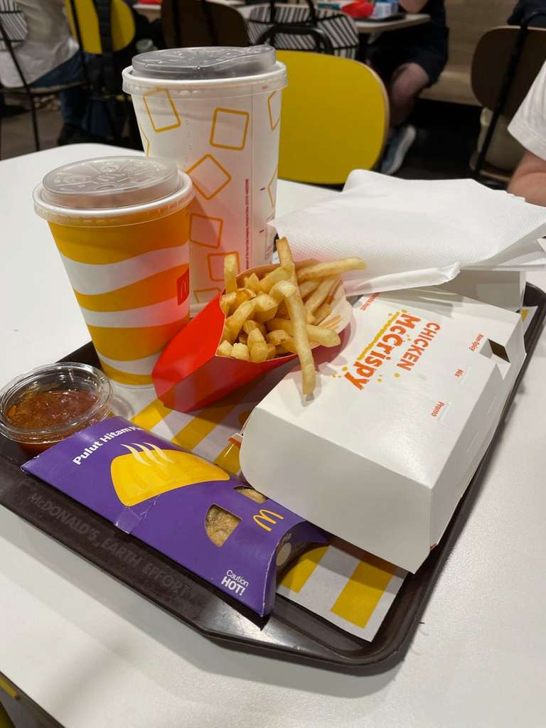 NĂ€r vi kĂ€nde oss nöjda med museet gick vi vidare vĂ„r favorit: McDonaldâs! Singapores utbud visade sig dock vara nĂ„got av en besvikelse. De hade en promo som kan beskrivas som âCrab Bonanzaâ, vilket i praktiken var en dippsĂ„s med vĂ€ldigt stark smak av krabba, och dĂ„ menar vi vĂ€ldigt stark. Det var inte vĂ„r grej, vi försökte doppa pommes i den men det kĂ€ndes mest fel. I övrigt var det ganska standardiserat sydostasien-utbud. Lite friterad kyckling som vanligt, men det saknades ris den hĂ€r gĂ„ngen. Det fanns en efterrĂ€tt med svart ris och kokos i pajform som faktiskt var rĂ€tt god. Det sista unika vi tog var en slags chokladdryck, som tyvĂ€rr inte alls var god. Efter det rullade vi tillbaka till hotellet, duschade och chillade. En lĂ„ng men smidig resdag med ett museibesök pĂ„ köpet. Imorgon vĂ€ntar heldag i Singapore - tagga!